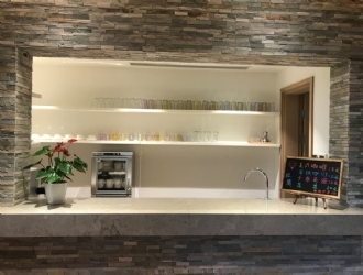 在老人用餐完畢后,我們對養(yǎng)老院的內部娛樂場所以及廚房內部進行了參觀。在養(yǎng)老院內部設施中,隨處可見的就是老人們的娛樂場所。小區(qū)設有桌球、沙狐球、高爾夫推桿、健身房、乒乓房、日式浴場、卡拉OK室、棋牌室,還配備了景觀藏書閱覽室、劇院級多功能大廳、影院、老年大學教室、美容美發(fā)室、推拿按摩室等。為老年人營造了一個老有所樂的社區(qū)氛圍。